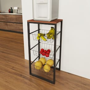 Fruteira de chão em aço cozinha suporte bebedouro amadeirado Produto vai desmontado, necessita realizar a montagem O produto já é enviado com o kit para instalação.