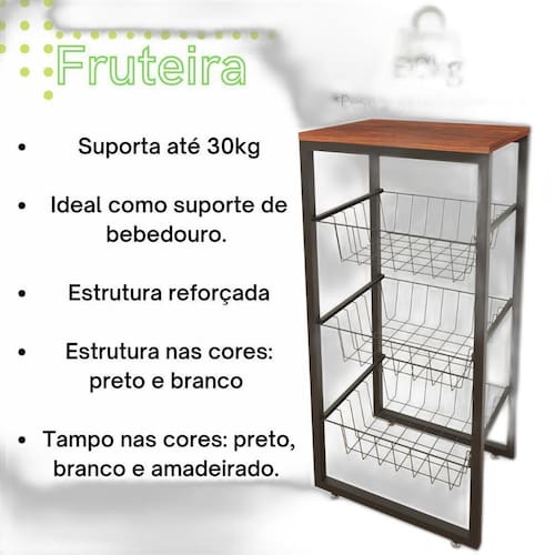 Conteúdo da embalagem: 1- fruteira preta com mdf preto de 3 cesto