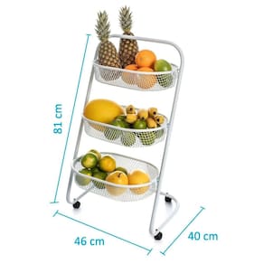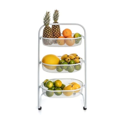 O organizador conta com rodízios de polipropileno, que tornam a locomoção fácil e prática. Com design compacto e elegante na cor branca, ele combina com qualquer ambiente e ajuda a manter tudo no lugar. Suas medidas montado são de 81 x 46 x 40 cm. Acabamento: Pintura Ambiente Principal: Cozinha Cesto para Frutas: 03 Cesto Removível: Sim codigo_ean: 7900288191038 Cor: Branco Cor do Produto: Branco Cor Interna: Branco Escala de Brilho: Semi-Brilho Informações Complementares: Cada cesto da fruteira suporta até 5 kg. Itens Inclusos: 1 Fruteira Linha ou Coleção: Superútil Manual de Montagem e Instalação: https://product-hub-prd.madeiramadeira.com.br/450649923/documents/53db5a17-da1b-4a5e-855e-6d6ddfc111963060538642217520761017315.pdf Marca: METALTEC DO BRASIL Material do Cesto: Aço Material dos Pés: PVC modular: Não Necessita Montagem: Não Origem do Produto: Nacional Pés Reguláveis: Não Peso: 2,3 kg Possui Pés: 04 Possui Portas: Não Recomendações de Uso, Manutenção e Limpeza: Encaixar os cestos até que fiquem firmes para o uso. Manter as rodinhas limpas para um desempenho correto. Rodízio com Trava: Não Sapatas Niveladoras: Não Suporta Até (kg): 15 kg