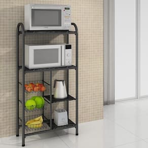 Fruteira De Chão Multi Belgica Bm Tubulares Prata Martelado A Fruteira Bélgica da BM possui dois nichos para forno e cestos aramados para deixar a sua cozinha muito mais organizada. Suas duas prateleiras superiores permitem que você coloque dois eletros ou decorações. As 3 cestas aramadas são reforçadas e possibilitam que guarde frutas e legumes com facilidade e para fácil acesso. As prateleiras são em ardósia, que além de agregar qualidade, dão ao móvel todo charme que o seu ambiente merece. A fruteira para micro-ondas e forno é fabricada com tubos laterais em aço de alta qualidade, garantindo robustez e o máximo de resistência à estrutura da peça. Sua cozinha merece um móvel que a deixe ainda mais bonita e arrumada. NA
