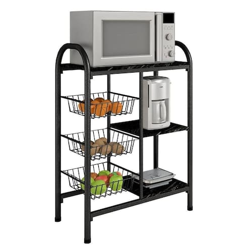 Fruteira De Chão Multi Espanha Bm Tubulares Prata Martelado A Fruteira Espanha da BM possui 1 prateleira para forno e cestos aramados para deixar a sua cozinha muito mais organizada. Ela possui 1 prateleira superior que permite você colocar forno micro-ondas ou elétrico. As 3 cestas aramadas são reforçadas e possibilitam que guarde frutas e legumes com facilidade e para fácil acesso. As prateleiras são em ardósia, que além de agregar qualidade, dão ao móvel todo charme que o seu ambiente merece. A fruteira para micro-ondas e forno é fabricada com tubos laterais em aço de alta qualidade, garantindo robustez e o máximo de resistência à estrutura da peça. Sua cozinha merece um móvel que a deixe ainda mais bonita e arrumada. NA