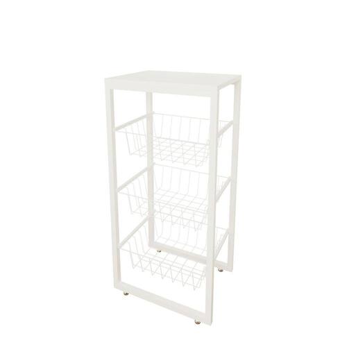 Fruteira De Chão Para Cozinha Branco Brilho Em Aço Branco Fruteira multiuso com cestos deslizantes produzida em aço, podendo ser utilizada em vários ambientes na cozinha, banheiro, quarto, facilitando seu dia-a-dia. Seu tampo superfície superior em MDF permite sua utilização para diversas outras possibilidades, como a utilização de arranjos ou até mesmo utensílios domésticos, como BEBEDOURO, suportando até 30 kg, o que lhe propicia um excelente custo-benefício. Dimensões:Altura - 80cmLargura - 39,5cmProfundidade - 23cm Beneficios:Cestos Deslizante, de fácil encaixe.Produto resistente. Com sistema de regulagem de altura.Pintura eletróstatica Epóxi, maior durabilidade não enferruja Conteúdo da Embalagem:1- Fruteira 3 cesto Garantia de fábrica. 3 meses contra defeito de fabricacão. Marca: Belolar