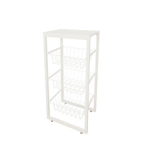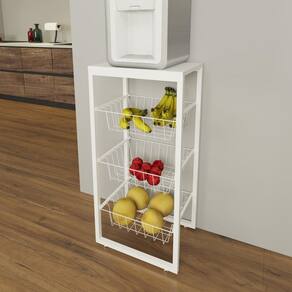 Fruteira De Chão Para Cozinha Branco Brilho Em Aço Branco Fruteira multiuso com cestos deslizantes produzida em aço, podendo ser utilizada em vários ambientes na cozinha, banheiro, quarto, facilitando seu dia-a-dia.