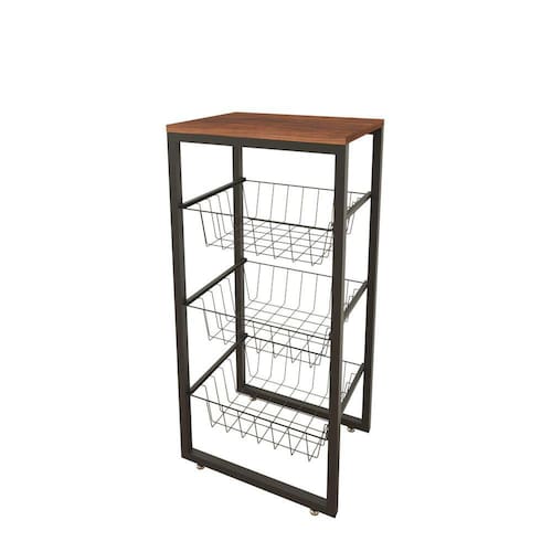 Fruteira De Chão Preto Fosco Em Aço Amadeirado Fruteira multiuso com cestos deslizantes produzida em aço, podendo ser utilizada em vários ambientes na cozinha, banheiro, quarto, facilitando seu dia-a-dia. Seu tampo superfície superior em MDF permite sua utilização para diversas outras possibilidades, como a utilização de arranjos ou até mesmo utensílios domésticos, como BEBEDOURO, suportando até 30 kg, o que lhe propicia um excelente custo-benefício. Dimensões:Altura - 80cmLargura - 39,5cmProfundidade - 23cm Beneficios:Cestos Deslizante, de fácil encaixe.Produto resistente. Com sistema de regulagem de altura.Pintura eletróstatica Epóxi, maior durabilidade não enferruja Conteúdo da Embalagem:1- Fruteira 3 cesto Garantia de fábrica. 3 meses contra defeito de fabricacão. Marca: Belolar