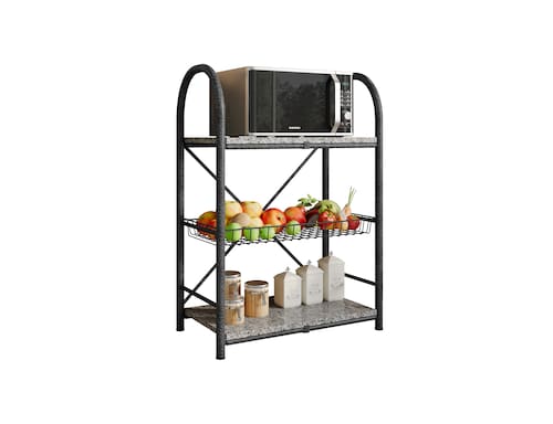 O grande diferencial desta fruteira são os seus tampos em granito, que conferem robustez e um suporte firme para eletrodomésticos, como micro-ondas ou bebedouros, suportando um peso total de até 30 kg.