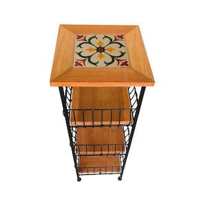 Fruteira de Ferro e Madeira Grande 3 Andares Com Ladrilho Hidráulico Artesanal - Ladrilho: D1