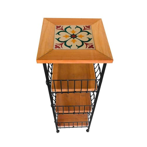 Fruteira de chão com três andares, construída por artesãos premiados, usando madeira maciça, ferro com pintura eletrostática antiferrugem e um ladrilho Hidráulico. Seu ótimo trabalho e materiais que garantem um excelente acabamento e a certeza de que irá durar muitos anos sem perder sua beleza natural.