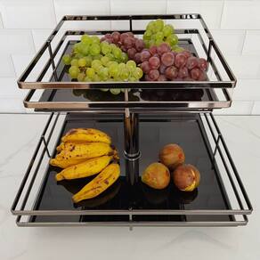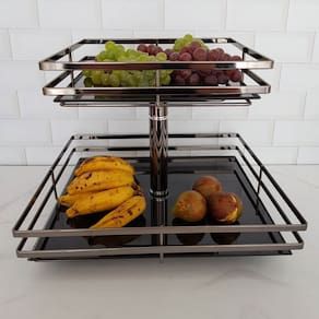 Fruteira de Mesa Aramada Giratória Quadrada com Prateleiras de Vidro Giosul Onix.