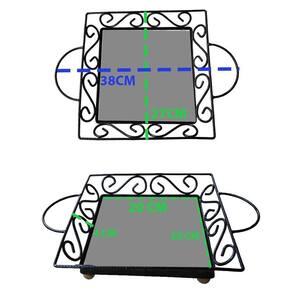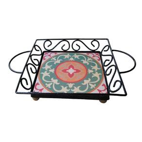 Fruteira De Mesa Bandeja Ferro E Azulejo Quadrada Premium Cozinha Azulejo G2