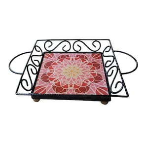 Fruteira De Mesa Bandeja Ferro E Azulejo Quadrada Premium Cozinha Azulejo G5