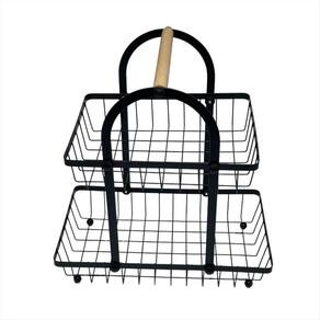 Fruteira de Metal: Organização com Estilo e Praticidade Dê um toque especial à sua cozinha com esta fruteira de metal de dois andares Com um design elegante e funcional, ela é perfeita para armazenar frutas, legumes e outros itens de forma prática e organizada. Benefícios que fazem a diferença: Material resistente - Estrutura de metal durável e estável. Dois andares espaçosos - Mais capacidade para otimizar seu espaço. Alça de madeira - Toque rústico e sofisticado para qualquer ambiente. Base com pés esféricos - Estabilidade e charme extra. Ideal para quem busca organização sem abrir mão do design moderno. Adicione mais praticidade e beleza à sua cozinha hoje mesmoEspecificações Técnicas:Cor: PretoMaterial: Metal e MadeiraMedidas Aproximadas: Altura: 30,5 cm x Largura: 17,5 cm x Comprimento: 30 cmImagens IlustrativasComposição da Embalagem:1 Fruteira Marca: Não Informado