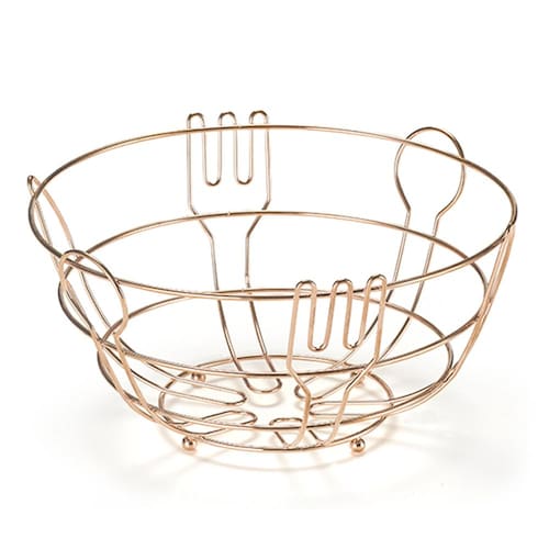 Fruteira De Mesa Cobre Rose Gold Line Redonda