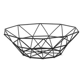 Fruteira de Mesa Redonda Metal Preta 27cm Aramada A fruteira de mesa é um organizador para armazenamento de frutas, legumes ou pães em balcões e mesas. Fabricada em metal com acabamento na cor preta, possui estrutura aramada que permite a circulação de ar entre os alimentos.O produto apresenta formato redondo com diâmetro de 27 cm e altura de 9 cm. Sua construção metálica oferece estabilidade e resistência para o uso diário em ambientes domésticos. O design aberto facilita a visualização e o acesso aos itens armazenados. Características e Ajustes:Aplicação: Uso sobre superfícies planas (mesas e bancadas) Limitação: Não indicada para contato direto com produtos químicos corrosivos. Manutenção: Limpeza deve ser realizada com pano seco ou levemente umedecido.