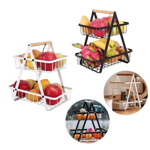 Fruteira de Metal Multiuso 02 Andares com Alça em Madeira Fruteira de Metal Multiuso 02 Andares com Alça em Madeira ===================================== Leve mais praticidade e estilo para sua cozinha, banheiro ou escritório com este organizador de 2 andares com cestos metálicos e alça de madeira. Ideal para armazenar frutas, temperos, utensílios, produtos de higiene ou itens diversos, ele combina funcionalidade com um design moderno e elegante. Sua estrutura metálica resistente, com acabamento preto fosco, harmoniza com qualquer ambiente, enquanto a alça em madeira natural oferece um toque rústico e facilita o transporte. Com dois níveis espaçosos, proporciona fácil acesso aos itens e otimiza o espaço, sendo perfeito para bancadas, mesas, prateleiras ou estantes. ===================================== Contém: 01 Fruteira Especificações: - Material: Metal e Madeira - Medida: 32cm x 20cm x 26cm - Andares: 02 - Peso: 820 gramas - Cor enviada de forma aleatória conforme disponibilidade em ===================================== Devido à diferença entre monitores e iluminação diferentes, pode haver variação na tonalidade apresentada no anúncio. Medidas muito aproximadas. Marca: Não Informado Ean: 6013400081672