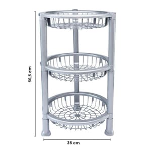 Você vai poder guardar frutas de forma segura e elegante com a Fruteira de plástico com 3 andares redonda empilhável Cinza.As cestas são de encaixe fixo e permite que você movimente, monte e desmonte com muita facilidade, além de permitir uma higienização com mais facilidade.Informações importantes;Medidas aproximadas montada - 35 x 56,5cm Diâmetro x Altura Composição - PolipropilenoCor - CinzaValidade - IndeterminadaFabricante - PlasnewProduto 100% NacionalMais Informações;Antes da primeira utilização, lave com água quente e detergente.Nunca utilize palha de aço, pois causa riscos e prejudica o produto.Após a limpeza, enxugue imediatamente para evitar formação de manchas. Fruteira de plástico com 3 andares redonda empilhável Cinza