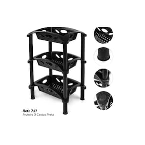 Fruteira de Plástico Moderna Preta 3 Seções com Reforço Faça a feira e leve as melhores frutas para casa. Arrume todas nesta bela fruteira de chão. Composto de 3 cestos, ela tem capacidade para 6 Kg, no qual pode colocar diversas frutas como maçãs, bananas, abacaxi, melancia, mamão, dentre outras. Ela vai ficar ótima em sua cozinha, deixando-a mais colorida e ainda proporcionando uma alimentação saudável.