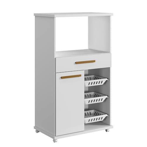 Caracter?sticas: Op??o Cesto Branco ou Preto Frente de Gaveta Dupla Face Tampo e Base MDF 18mm Bordas Arredondadas e Pintadas Prateleira Interna 4 Rodizios Corredi?as Telesc?picas
