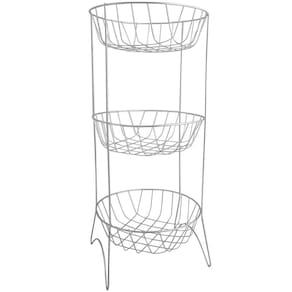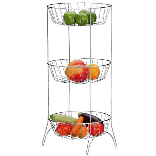 Tornar sua vida mais saudável e balanceada ficou ainda mais fácil. Já pensou em ter as frutas, verduras entre outros alimentos próximos e visíveis a você? Nós trazemos este benefício para você com essa bela fruteira de três andares. A fruteira aramada é uma ótima aliada também para a organização da sua cozinha. Este suporte possuí cor cromada e aspecto brilhante que além de trazer beleza à sua cozinha ainda dará versatilidade, sem ocupar muito espaço. Por possuí três espaços, você pode dividir os alimentos da maneira que desejar setorizando eles e proporcionando agilidade e facilidade no seu dia a dia.