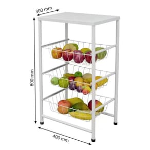 Fruteira MIX, permite organizar vários ambientes de sua casa como em pontos comerciais ( salão de beleza, barbearia etc).Os cestos são removíveis para maior facilidade! Especificações Técnicas:- Material do tampo: Aço- Material da estrutura: Aço- Cor: Branca / Preto Fosco / Texturizada- Tratamento antiferrugem - Possui 3 cestos removíveis- Dimensões: 40 x 30 x 81 cm (CxLxA)- Peso: 2,65 kg