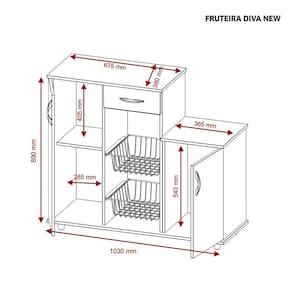 Fruteira Diva New é um produto ideal para a sua cozinha pois o mesmo tem muita utilidade em varias composições, esse produto tem espaço para colocar forno ou microondas, tem dois cestos aramados para guardar frutas aonde o mesmo é removível para facilitar ainda mais na hora da limpeza, possui uma gaveta, tem uma porta maior com uma prateleira interna e uma porta menor aonde você vai ter uma excelente espaço para guardar mantimentos, e mais um espaço para colocar galão de água Acabamento: Pintura UV Acabamento da Gaveta: Pintura UV Acabamento da Porta: Pintura UV Acabamento da Prateleira: Pintura UV Altura dos Pés: 5 Ambiente Principal: Cozinha Cesto para Frutas: 02 Cesto Removível: Sim Complexidade da Montagem: Média: pode ser montado por mais de uma pessoa e/ou necessite de maior conhecimento para montagem Cor: Freijo Trend/Branco New Cor do Produto: Freijo Trend/Branco New Cor Interna: Freijo Escala de Brilho: Fosco Escala de Brilho da Gaveta: Semi-Brilho Escala de Brilho da Porta: Brilhante Escala de Brilho da Prateleira: Fosco Gaveta com Chave: Não Itens Inclusos: 1 Fruteira, Kit Ferragens e Manual de Montagem Linha ou Coleção: 2019 Manual de Montagem e Instalação: https://product-hub-prd.madeiramadeira.com.br/766397/documents/bcccdab4-198a-43cf-af0c-7c4c7a86b498iradivanewmanualdemontagem.pdf Material da Dobradiça/Corrediça da Porta: Metálica Material da Gaveta: MDP Material da Porta: MDP Material da Prateleira: MDP Material do Cesto: Ferro Material do Puxador da Gaveta: ABS Material do Puxador da Porta: ABS Material dos Pés: Plástico Necessita Montagem: Sim Origem do Produto: Nacional Pés Reguláveis: Não Peso: 2611 Peso Máximo por Gaveta: 5 Peso Máximo por Prateleira: 5 Possui Pés: 05 Possui Portas: 02 Recomendações de Uso, Manutenção e Limpeza: Para maior durabilidade, recomenda-se que a limpeza dos móveis seja feita da seguinte forma: Nas partes externas (portas, laterais e frente de gaveta) e internas, a limpeza deverá ser feita com pano limpo e levemente umedecido em água e sabão neutro. Em seguida, deverá ser passado um pano limpo e seco. Sapatas Niveladoras: Não Sistema de Montagem: Parafuso e minifix Suporta Até (kg): 40 Tipo de Corrediça da Gaveta: Telescópica Tipo de Dobradiça/Corrediça da Porta: Simples Tipo de Porta: Bater Tipo de Puxador da Gaveta: Externo Tipo de Puxador da Porta: Externo