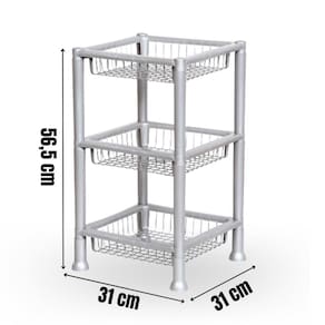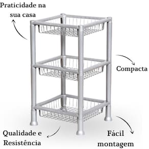 Cesto organizador fruteira com 3 andares empilháveis - cestos empilháveis até 3 andares e desmontáveis; - forma fácil e rápida de organizar suas coisas em qualquer cômodo da casa, principalmente na cozinha; - altura máxima de 56cm com os 3 andares; - material de qualidade, ao desmontar, vira uma peça compacta; -fácil higienização; -suporta até 3 kg por cesto; -produto resistente, fácil montagem e prático para o dia a dia. Especificações e ficha técnica - material: plástico - cor: cinza - quadrada -medidas: 56x31x31cm Itens inclusos - 01 cesto organizador empilhável 3 andares quadrado Informações importantes Produto com Marca: Não Informado