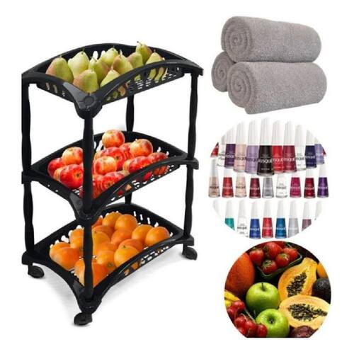 Fruteira Prateleira 3 Andares Organização Pratica Preta