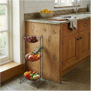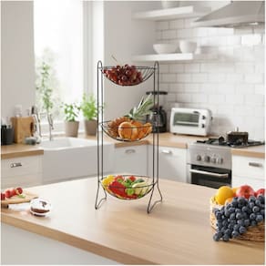 A Fruteira Aramada vai fazer a diferença na sua cozinha! Organize suas frutas e legumes com praticidade, além de conseguir otimizar os espaços da sua cozinha. Sua casa pede uma fruteira versátil, com design moderno para compor a decoração da cozinha. Com 3 cestos em aramado, a fruteira é ideal para os lares que adoram consumir esse tipo de alimento, também conta com o acabamento Rust Free, muito mais resistente.