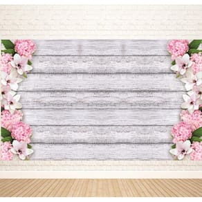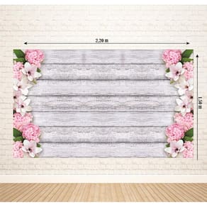 Fundo Fotográfico Em Tecido Madeira Floral Rosa 2,20X1,50