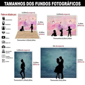 Fundo fotográfico: Material - tecido malha premium poliéster flexível 240g/ml As medidas você encontra no título do anúncio Não acompanha estrutura para colocar Os fundos são produzidos com qualidade fotográfica em impressão digital de última tecnologia. Tecido é malha poliéster flexível de ótimo caimento, não reflete luz e não amassa. Costura overlock nas laterais para não desfiar contendo passa varão. Impressão à base d'água. As cores dos produtos podem variar de tonalidade em 15% devido resolução do monitor ou tela do celular, mas nada que interfira na qualidade e beleza do mesmo. Diferenciais - pode ser molhado ou lavado com água e sabão neutro sem uso de bucha evite exposição ao sol pois a secagem é bem rápida. Garantia - contra defeito de fabricação.
