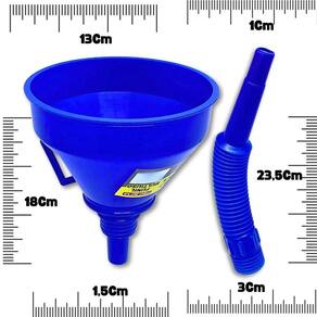 O Funil Multiuso FBG-3073 é fabricado em plástico resistente e leve, ideal para uso doméstico, automotivo, agrícola ou industrial. Perfeito para transferência de líquidos, como óleo, combustível, água e outros fluídos, sem desperdícios ou sujeira.