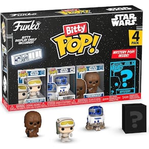 Adicione os heróis e vilões de Star Wars - O Império Contra-Ataca à sua coleção com este incrível conjunto de 4 figuras Bitty Pop!, incluindo Luke Skywalker, R2-D2, Chewbacca e uma figura misteriosa rara. COLECIONE COM ESTILO. Cada figura Bitty Pop! de 2,3 cm vem em uma caixa de acrílico rígida e empilhável, permitindo uma exibição elegante e segura. Organize seus colecionáveis e exiba-os com facilidade, mantendo sua coleção de Star Wars sempre impecável. SURPREENDA-SE. Descubra uma vasta gama de personagens de filmes, séries, videogames e quadrinhos para todos os gostos. EXPERIÊNCIA ÚNICA. Celebre sua paixão pela cultura pop com os Bonecos Funko POP! com sua estética icônica de cabeça grande e corpo pequeno. BONECOS FUNKO POP. Desde estrelas do pop até super-heróis de grandes filmes de Hollywood, a magia de um boneco Funko está nos detalhes realistas