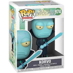 ""Produto internacional. Os impostos estão incluídos. O cliente não precisa pagar impostos; caso o faça, não será reembolsado.""De Solar Opposites, Korvo, como um Pop estilizado! vinil de Funko! A figura tem 3/4 polegadas e vem em uma caixa de exibição de janela. Confira as outras figuras do Solar Opposites da Funko! Recolham todos eles!
