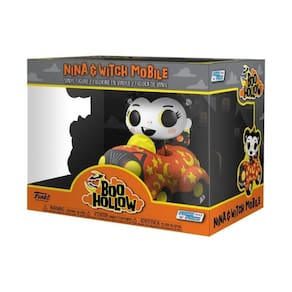 Agite algumas travessuras bem-humoradas com a Nina de Boo Hollow em seu Witchmobile! Nina e seu gato Lucky estão cruzando Boo Hollow, procurando globos oculares extras para preparar algo bruxo. Zoom junto com ela em seu Witchmobile souped-up em cores doce-milho. Paka Paka faz a ponte entre o mundo de Boo Hollow e o nosso. Normalmente, esta pequena vila assombrada só aparece uma vez por ano, mas agora todos poderão trazer para casa os deliciosos moradores que mantêm o espírito do Halloween zumbindo durante todo o ano. Dirija para casa com o Boo Hollow Ride de Nina em seu Witchmobile e assuste um pouco de diversão. A figura de vinil tem aproximadamente 5,08 centímetros de altura.
