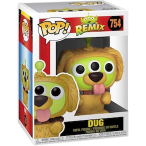 Os alienígenas do Planeta Pizza estão vestidos como seus personagens favoritos para Pixar Alien Remix. Apresentando pop! Alien como Dug from Up! Qual fantasia ganhará o concurso em sua coleção Disney-Pixar? A figura do vinil tem aproximadamente 3,75 polegadas de altura e vem em uma caixa de exibição de janelas. Recolham todos eles!