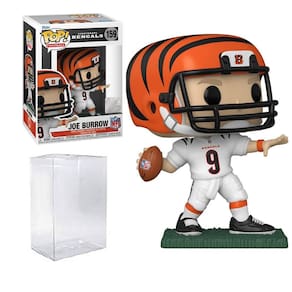Joe Burrow (Cincinnati Bengals) Funko Pop da NFL! Série 8 com estojo protetor Ecotek. Vem embalado em um Funko Pop! caixa de exibição de janela dentro de uma caixa protetora Ecotek.
