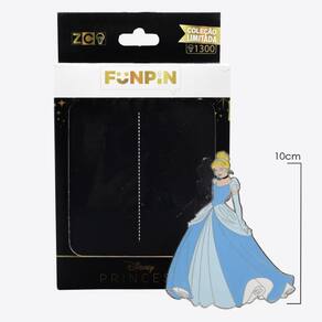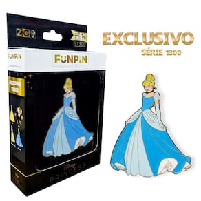Feito em metal zamak com pintura automotiva de alta qualidade, o Funpin Cinderela é resistente a arranhões e desbotamentos. Ele possui tarraxas para fixação e um suporte de acrílico que o mantém em pé. Além disso, cada FunPin possui um número de série exclusivo para você identificar suas coleções.
