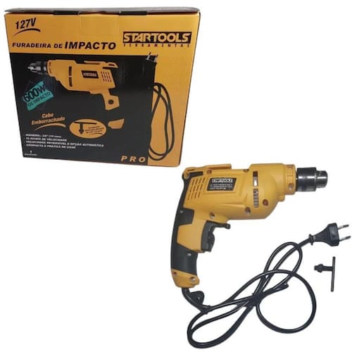 Para que serve / Funcionalidades Perfeita para perfurar madeira, metais e concreto leve. Ideal para fixação de objetos, instalações elétricas, montagens, reparos, obras pequenas e uso doméstico ou profissional. A função reversível auxilia no parafusamento e na retirada de brocas com mais facilidade. Descrição Ferramenta potente, compacta e versátil, essa furadeira de impacto oferece alto desempenho com 600W de potência no modo impacto e 300W em rotação. Chega a até 3.000 rotações por minuto, garantindo eficiência nas perfurações em diversos materiais. Conta com mandril de 10mm com chave de aperto para maior segurança, função reversível para aplicações versáteis, e cabo emborrachado que proporciona conforto no uso contínuo. É leve, ergonômica e segura, equipada com sistema de dupla isolação elétrica, sendo ideal para trabalhos em madeira, aço ou alvenaria leve. O que contém