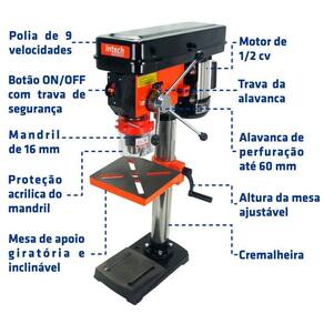 Furadeira De Bancada Com Mesa Móvel 1/2Hp Db16 Intech Machine pfuradeira De Bancada 1/2 HP Db16 Intech Machine/pp /ppA furadeira de bancada DB16 da Intech Machine é um item essencial para carpintarias, serralherias, marcenarias e oficinas. Ela pode ser utilizada para perfurações em geral, como madeira, chapas metálicas, para escarear, alargar, rebaixar, etc. /pp /ppa DB16 é potente, com motor de 1/2HP e rotação de até 2850rpm. Possui 9 velocidades de operação, capacidade de perfuração de 16mm e profundidade de até 60mm com indicador./pp /ppa DB16 possui mesa de apoio para o material a ser manuseado, inclinável até 360 verticalmente e giratória em até 40, o que proporciona maior autonomia na manipulação de objetos de diferentes tamanhos e formatos./pp /ppdiferente de outras máquinas mais populares oferecidas no mercado, tanto a base da DB16 quanto sua mesa de apoio são robustas, feitas em ferro fundido maciço, que deixam a furadeira de bancada muito mais resistente, pesada e estável para utilização./pp /ppprojetada para trazer conforto e precisão ao usuário, a DB16 da Intech Machine conta com 3 alavancas emborrachadas em formato ergonômico e design inovador que proporcionam conforto e agilidade durante a movimentação do mandril. /pp /ppa DB16 vem com protetor de mandril removível, desenvolvido em acrílico transparente para garantir visibilidade ao operador, e para que o mesmo não seja atingido por partículas provenientes da peça a ser trabalhada./pp /ppespecificações Técnicas:/pp /ppModelo: DB16/ppCapacidade de furação: 16 mm/ppTensão:127V ou 220V selecione a voltagem desejada na parte superior deste anúncio, logo abaixo do campo /ppFrequência: 60Hz/ppMotor: 1/2 HP 375W /ppN de velocidade: 9 velocidades/ppVelocidades: 500 rpm à 2.950 rpm/ppEixo do mandril: B16/ppAltura total: 840 mm/ppDistância Mandril / Base: 524 mm/ppDistância Mandril / Mesa: 400 mm/ppProfundidade de perfuração: 60 mm/ppDimensão mesa: 200 x 200 mm/ppDimensão base: 320 x 200 mm/ppDiâmetro da coluna: 60 mm/ppGarantia: 12 meses/p Marca: Não Informado