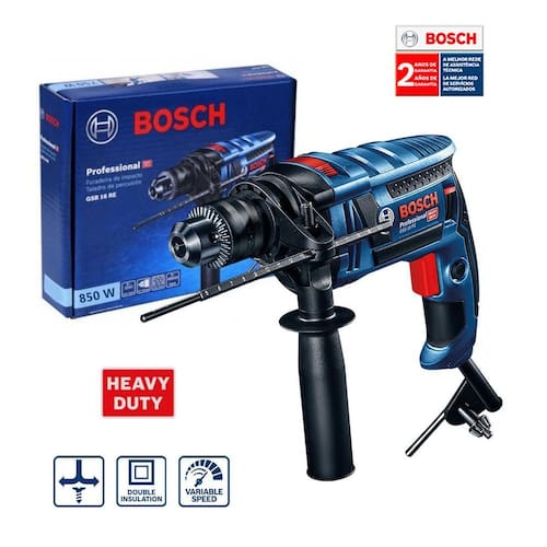 Furadeira de impacto 1/2 pol 850w gsb 16 re bosch gsb16re Voltagem: 110v Furadeira de impacto bosch gsb 16 re 850w + acessórios Chegou a gsb 16 re, ainda mais forte com 850w de potência. É uma ferramenta completa, pois possui todas as funções necessárias Para que o seu trabalho seja realizado da melhor forma possível. Seja em sua residência ou no trabalho, ela atenderá com muita eficiência. Com o sistema de velocidade variável e reversível, ela fura, fura com impacto, parafusa e desparafusa. Não é incrível Basta selecionar o dispositivo, ela funciona no sentido horário e anti-horário e o controle de velocidade é no gatilho. Melhor desempenho, mais eficiência. Dados técnicos: -dados adicionais: -potência nominal absorvida: 850w; -peso: 1,8kg; -nº de rotações em vazio: 0 - 3.500 r.P.M. -dimensões da ferramenta (comprimento): 280mm; -dimensões da ferramenta (largura): 70mm; -dimensões da ferramenta (altura): 210mm. -nº máx. De impactos em vazio: 0 - 52.500i.P.M.; -amplitude de aperto, min./máx.: 1,5 - 13mm; Faixa de perfuração: -diâmetro de perfuração em concreto: 16mm; -diâmetro de perfuração em madeira: 25mm; -diâmetro de perfuração em aço: 12mm; O nível sonoro da ferramenta eléctrica classificado com a é normalmente: nível sonora db(a); Nível de potência sonora db(a). Incerteza k= db. Vantagens: -melhor desempenho, mais eficiência. -a furadeira de impacto bosch gsb 16 re possui 850w de potência para os trabalhos mais exigentes. Sua carcaça robusta tipo pote garante maior durabilidade e vida útil da ferramenta. Além disso, vem com de velocidade variável, punho auxiliar e radial para um manuseio seguro, além de botão trava Para trabalhos contínuos. Recomendada para uso industrial. Trabalho continuo. -robusta carcaça de engrenagem tipo pote: maior vida útil e durabilidade do produto. Punho auxiliar com Bloqueio axial e radial: manuseio preciso e seguro. eletrônico para melhor controle e ajuste de Velocidade variável e botão trava: ideal para trabalhos contínuos. -uso industrial com 2 anos de . Itens que acompanham a gsb 16 re -empunhadeira adicional; -limitador de profundidade -chave de mandril.
