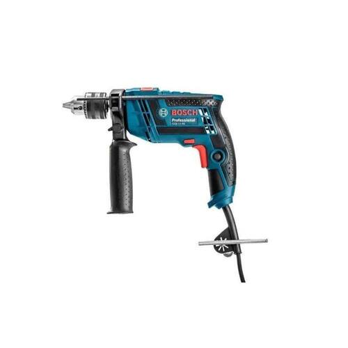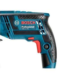 Descrição A Furadeira de Impacto GSB13RE Bosch dispõe potência de 650 watts que responde as necessidades dos clientes. A GSB 13 RE Bosch tem interruptor de velocidade variante que permite trabalho constante. Características: A Furadeira de Impacto Bosch GSB 13 RE possui 650W de potência, é super leve e compacta. A Furadeira possui interruptor de velocidade variável e botão trava para trabalhos contínuos. Motor de alto desempenho de 650 W para atender a todas as necessidades dos usuários. Empunhadura emborrachada: agarre seguro e confortável. Informações Técnicas - Potência nominal absorvida: 650 W; - Nº de rotações em vazio, 1 velocidade: 0 - 3.150 r.P.M.; - Dimensões da ferramenta comprimento : 274 mm; - Nº máx. De impactos em vazio: 0 - 47.250 i.P.M.; - Torque nominal: 1,8 Nm; - Amplitude de aperto, min./máx: 1,5 - 13 mm; - Potência útil: 301 W; - Mandril de encaixe do veio da broca: 1/2- 20 UNF 13 mm ; - Dimensões da ferramenta altura : 180 mm; - Faixa de perfuração: Diâmetro de perfuração em alvenaria: 15 mm; Diâmetro de perfuração em concreto: 13 mm; Diâmetro de perfuração em madeira: 25 mm; Diâmetro de perfuração em aço: 10 mm; - Valores totais de vibração Perfurar metal : Valor de emissão de vibrações ah: 3 m/s; Incerteza k: 1,5 m/s; - Valores totais de vibração Perfurar com percussão em concreto : Valor de emissão de vibrações ah 26 m/s; Incerteza K 3 m/s; - Valores totais de vibração Parafusar : Valor de emissão de vibrações ah: 2,5 m/s; Incerteza K: 1,5 m/s. Itens Inclusos: 1 - Limitador de profundidade; 1 - Chave de mandril; 1 - Punho auxiliar.