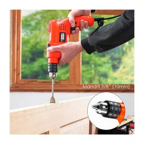 Furadeira de Impacto 3/8" 560W 220V TM500B2 Black And Decker A furadeira de impacto da Black And Decker é essencial tanto para serviços profissionais quanto para serviços de reparos domésticos. Uma ferramenta indispensável quando o assunto é qualidade e acabamento. Possui modo de perfuração ou com impacto, com motor de 560W ideal para aplicações em alvenaria, madeira e metal, ação impacto para trabalhar com mais eficiência em alvenaria e azulejos, trava de gatilho para uso contínuo e seletor de impacto ou rotação oferece um ótimo rendimento em grande variedade de materiais. Por que a furadeira de impacto da Black And Decker é ideal para me acompanhar no trabalho? Porque ela dispõe de praticidade, qualidade e está apta para atender suas expectativas, ideal para aplicações em alvenaria, madeira e metal, traz mais precisão no trabalho com acabamento de qualidade, resistente e de alta durabilidade. Sem contar com empunhadura com desenho ergonômico para comodidade do usuário. Especificações sobre o produto: Marca: Black and Decker Garantia: 1 ano de garantia Modelo: TM500B2 Mandril: 3/8" 10mm Voltagem: 220V Potência: 560W Velocidade: 2800/min rpm Impacto: 45000 ipm Ação impacto: Sim Capacidade de perfuração em metal: 3/8" 10mm Capacidade de perfuração em alvenaria: 3/8" 10mm Capacidade de perfuração em madeira: 1" 25mm Itens Inclusos: 01 Furadeira de impacto 3/8" 10mm 01 Chave de mandril O que você está esperando? A furadeira de impacto Black and Decker possui a praticidade, qualidade e versatilidade que você precisa, além de ser super útil para profissionais da área e para reparos caseiros. Ean: 0885911155335