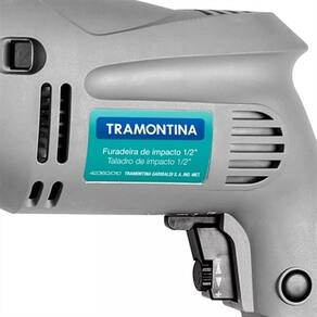 Esta furadeira da tramontina possui excelente desempenho em trabalhos de perfuração. ideal para trabalhos em alvenaria, aço, concreto e madeira. também conta com botão com reversão e variação de velocidade, propiciando um maior conforto e praticidade durante a operação. também vem com trava lateral para quando a ferramenta for Utilizado em trabalhos contínuos. a empunhadura lateral proporciona maior conforto e segurança. a furadeira possui gatilho com potenciômetro para variação de velocidade e uma indispensável empunhadura auxiliar que dá melhor sustentação e direcionamento da broca. uma furadeira feita para profissionais exigentes e práticos. Características: modelo: 42360/010 cor: cinza mandril: 1/2 13mm; rotação: 02900 min1 / rpm. Voltagem: 220V potência: 500w frequência: 50/60hz peso: 1,72 kg dimensões a x c : 25 x 28 cm Características: modelo: 42360/010 cor: cinza mandril: 1/2 13mm; rotação: 02900 min1 / rpm. tensão: 220v ou 110v a sua escolha na hora da compra potência: 500w frequência: 50/60hz Dimensões a x c : 25 x 28 cm Peso: 1,72 kg Conteúdo da embalagem: 1un furadeira de impacto tramontina 1/2 500w 1 chave mandril 1 manual do usuário 1 guia de profundidade 1 empunhadura auxiliar : 1 ano ofertada pelo fabricante