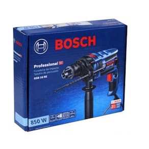 A furadeira de impacto Bosch GSB 16 RE é indicada para os trabalhos mais exigentes. É a primeira furadeira da categoria com 850W de potência e rotação de 3.500 RPM, por isso, traz a combinação perfeita de robustez e desempenho. Versátil, conta com 2 modos de perfuração, com impacto e sem impacto. A carcaça reforçada, a engrenagem helicoidal, o porta-escovas e o botão de reversão de alta qualidade tornam a ferramenta muito mais durável com o benefício de oferecer menor vibração e ruído para o usuário. Além disso, o melhor alinhamento das peças internas contribui também para o aumento da vida útil. A furadeira de impacto também vem com pega emborrachada para melhor aderência e conforto durante o uso. Vem com de velocidade variável, punho auxiliar e radial para um manuseio seguro, além de botão trava para trabalhos contínuos. - Uso industrial com 2 anos de . Características: - Equipamento Bosch Heavy Duty; - Possui velocidade variável; - Não possui controle de torque; - Equipamento rolamentado; - Acabamento da ferramenta: Poliamida, metal e elastômero; - Acabamento do cabo: Borracha, cobre; - Comprimento do cabo: 2 metros; - Tipo de embalagem: Caixa de Papelão - Material de aplicação indicado: Perfurações em concreto, alvenaria, madeira e metal com e sem impacto; - Público Alvo: Pedreiros, marceneiros, carpiteiros, instaladores em geral, vidraceiros, oficinas de manutenção, serralheiros, eletricistas, calheiros. Especificações Técnicas: - Tensão: 110v ou 220v não é bivolt ; - Cor: Azul; - Mandril: 1/2 - 13 mm com chave ; - Potência nominal absorvida: 850W; - Nº de rotações em vazio: 0 - 3.500 rpm; - Nº máx. De impactos em vazio: 0 - 52.500 ipm; - Torque nominal: 2,1 Nm; - Amplitude de aperto Mínimo/Máximo : 1,5 - 13 mm; - Peso: 2 kg; - Dimensões Produto AxLxP : 19,3 x 7 x 28,1 cm. Faixa de Perfuração: - Diâmetro de perfuração em concreto: 16 mm; - Diâmetro de perfuração em madeira: 30 mm; - Diâmetro de perfuração em aço: 13 mm. Vibração m/s : - Furar com Impacto em concreto: ah = 18,0 m/s, K = 1,5 m/s; - Furar metal: ah = 7,3 m/s, K = 1,5 m/s. Itens Inclusos: - 1 Furadeira de impacto GSB 16 RE; - 1 Empunhadeira auxiliar; - 1 Chave de mandril; - 1 Limitador de profundidade; - 1 Manual de Instruções.