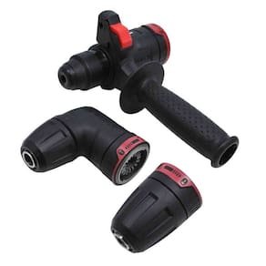 Com vários adaptadores ajustáveis, o sistema FlexiClick oferece a solução ideal em todas as situações de trabalho, podem ser bloqueados em 16 posições diferentes (360°) sem a necessidade de os retirar da parafusadeira sem fio. O adaptador exclusivo para martelo perfurador transforma a furadeira/parafusadeira em um martelo perfurador completo. Flexível e versátil para qualquer trabalho na classe de 18V.