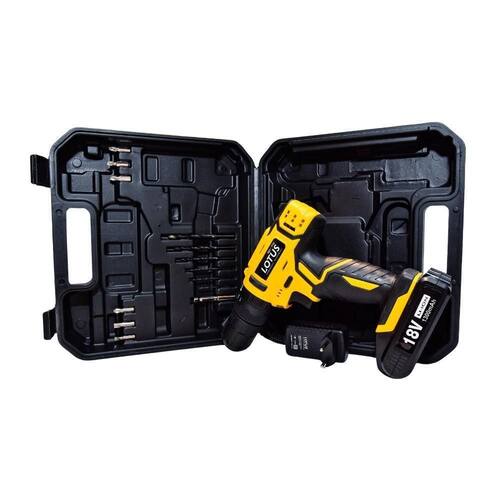 A Furadeira e Parafusadeira com Impacto Lotus a bateria 18V - 13 acessórios, é a ferramenta ideal para profissionais e entusiastas do faça-você-mesmo que procuram eficiência e potência em um único equipamento. Com um design ergonômico e robusto, esta parafusadeira proporciona um desempenho excepcional para uma ampla variedade de aplicações, desde a montagem de móveis até reparos e construções mais complexas.