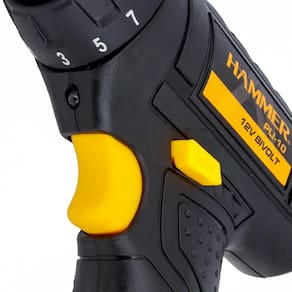 A Furadeira e Parafusadeira da Hammer tem design ergonômico, mandril de 3/8" e luz de LED para iluminação. Ideal para alcançar cantos menores e com pouca luz. Conta com rotação (sem carga) de 0-550RPM, velocidade variável e reversível e torque máximo de 19Nm. Parafusadeira à bateria 12V com 1 Bateria Íons de Lítio.