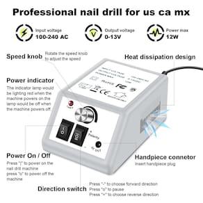 - Broca de lixa de unha de baixo ruído, baixa vibração, baixa temperatura: a velocidade pode chegar a 20.000 RPM, você pode ajustar a velocidade com precisão simplesmente girando-a facilmente. Confortável de segurar, os modos esquerdo e direito podem ser utilizados.