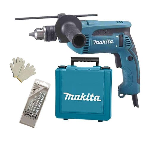 Furadeira de Impacto Makita 760W Hp1640K + Maleta, jogo de brocas e luvas