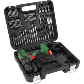 Acompanha 74 acessórios encaixados perfeitamente na maleta, conferindo organização, praticidade e maior vida útil dos acessórios. Possui regulagem para 18 posições de torque e velocidade variável (2 velocidades). Contém 3 funções de operação: parafusadeira, furadeira sem impacto e furadeira com impacto. Possui LED para melhor visibilidade do local de trabalho, indicador de carga da bateria, cabo com revestimento emborrachado proporcionando maior conforto ao operador, bateria de íons de lítio que confere alta eficiência de operação, além de fonte bivolt automática com tensão de entrada de 100 V~ - 240 V~.