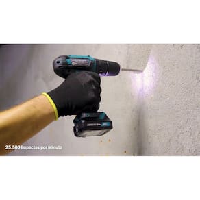 Informações Técnicas - Capacidades: - Aço: 10mm; - Madeira: 21mm; - Alvenaria: 8mm; - Rotações por minuto: - Alta: 0 - 1.700; - Baixa: 0 - 450; - Impactos por minuto: - Alta: 0 - 25.500; - Baixa: 0 - 6.750; - Torque: - Junta rígida: 30 N.M; - Junta flexível: 14 N.M; - Dimensões C x L x A : 193 x 66 x 212mm; - Peso: 1.1kg; - Bateria: 12V; - Emissão de vibrações: 13 m/s; - Incerteza K: 1.5 m/s.